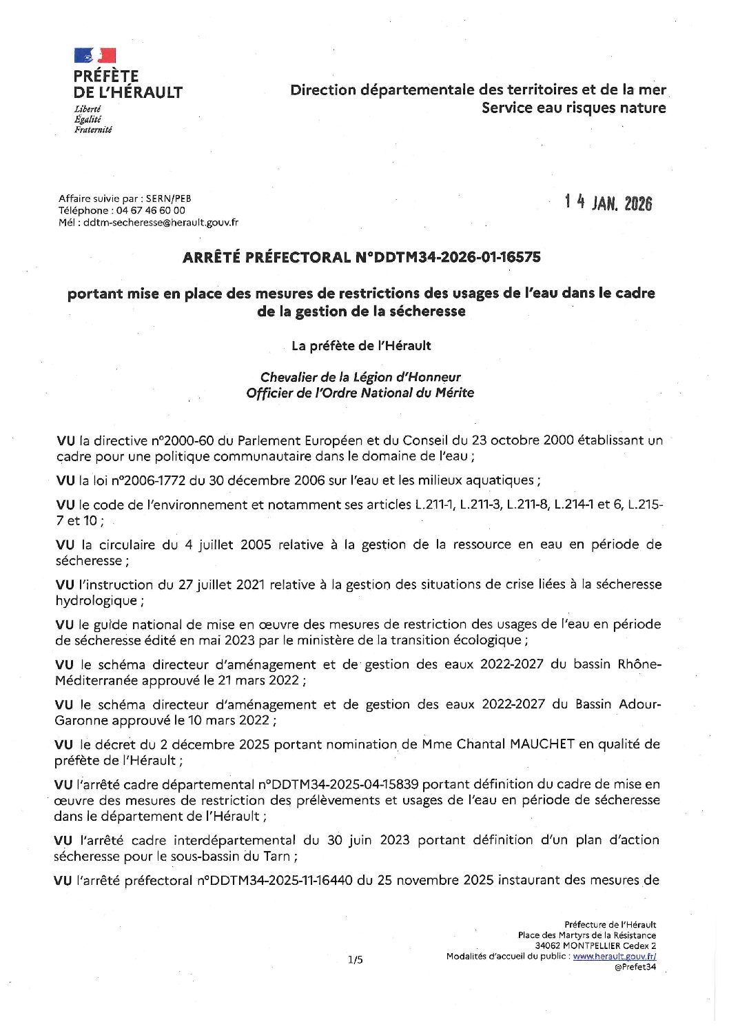 Arrêté préfectoral Janvier 2026 – Sècheresse Lire l’article