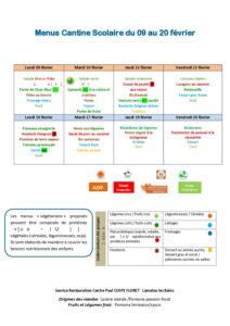 Menus du 9 au 20 février
